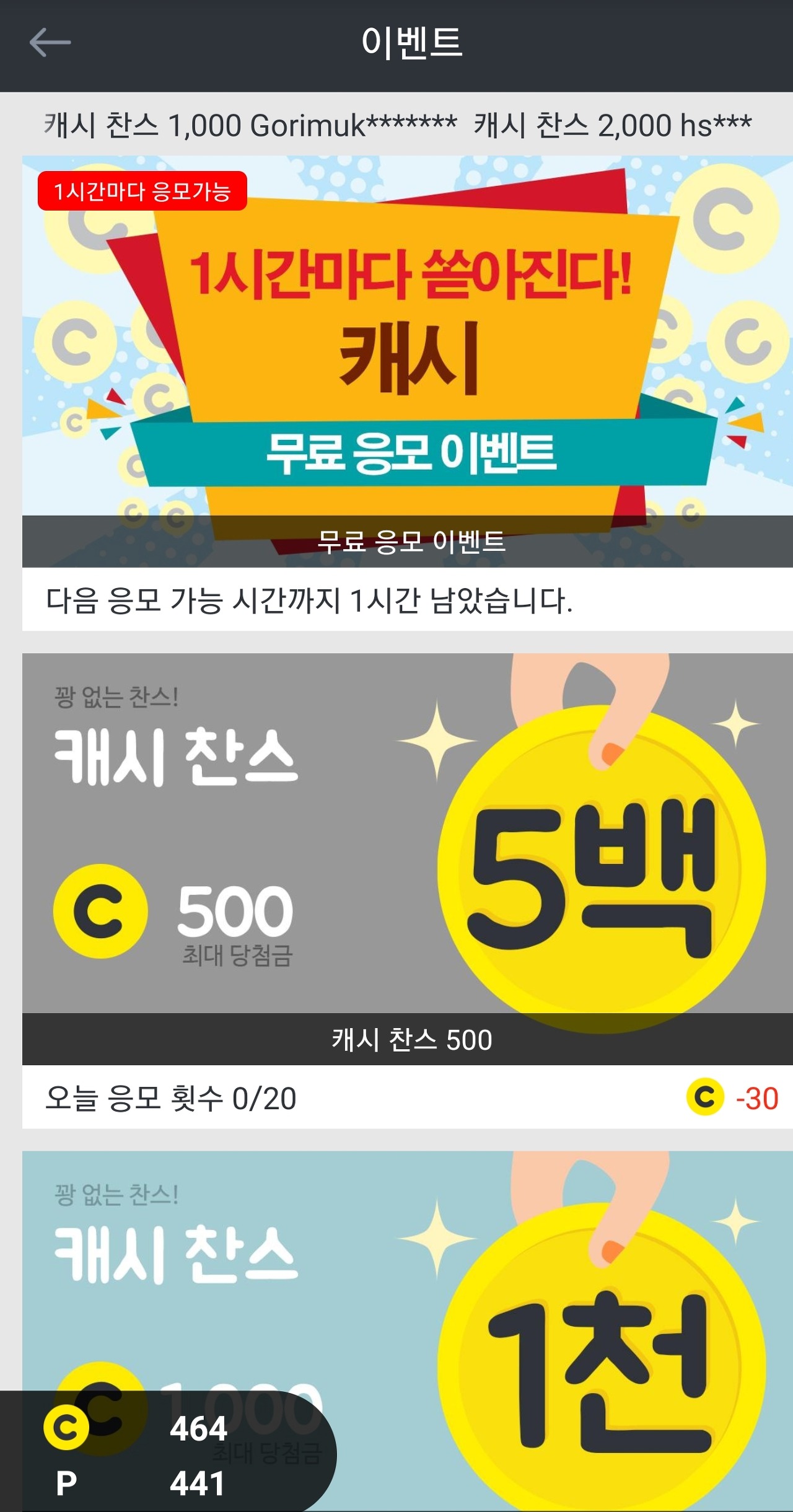 5캐시, 10캐시씩 보통 적립되었어요.