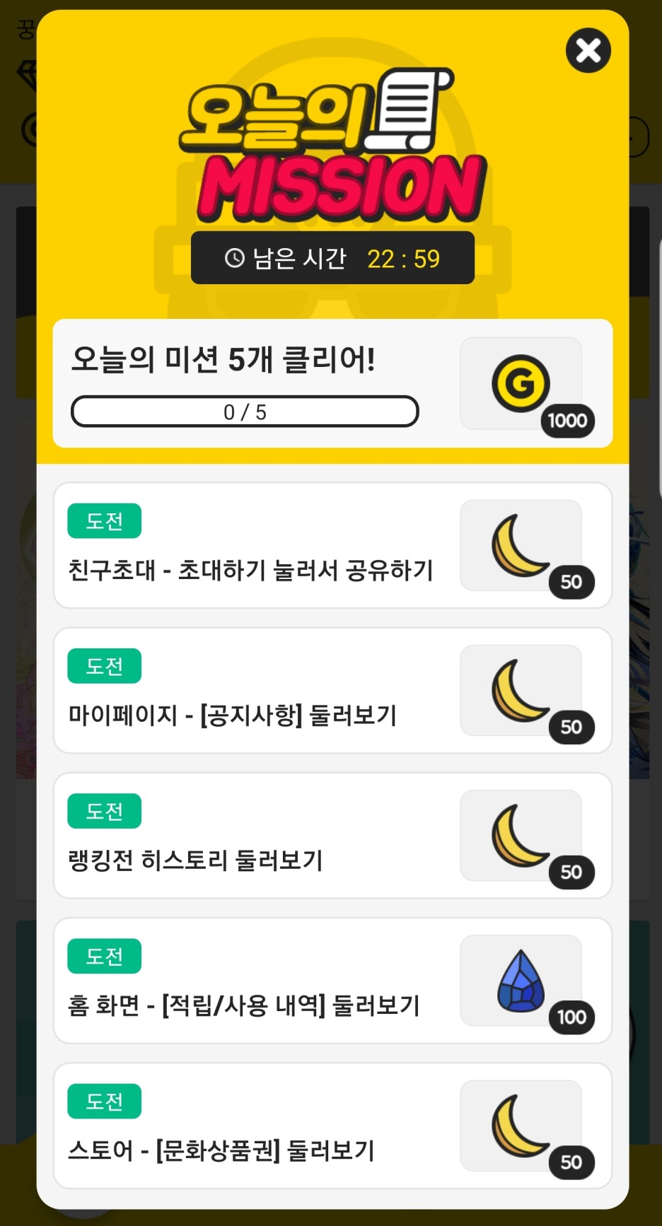 꼭 게임참여가 아니어도 매일 다양하게 주어지는 미션과