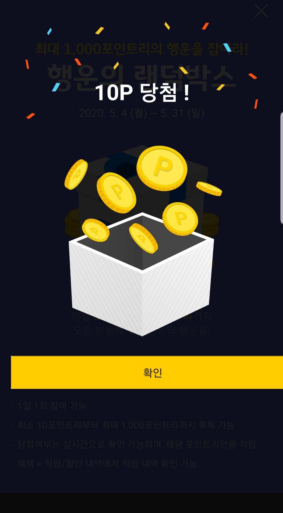 행운의 랜덤박스 적립 이벤트입니다.