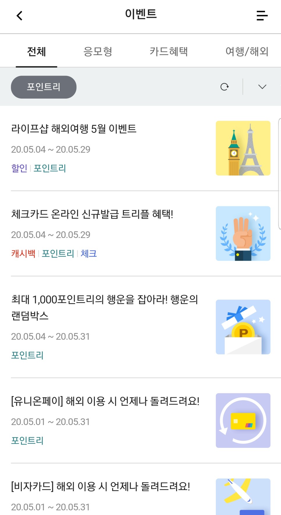 5월에는 카드사마다 다양한 포인트 획득 이벤트가